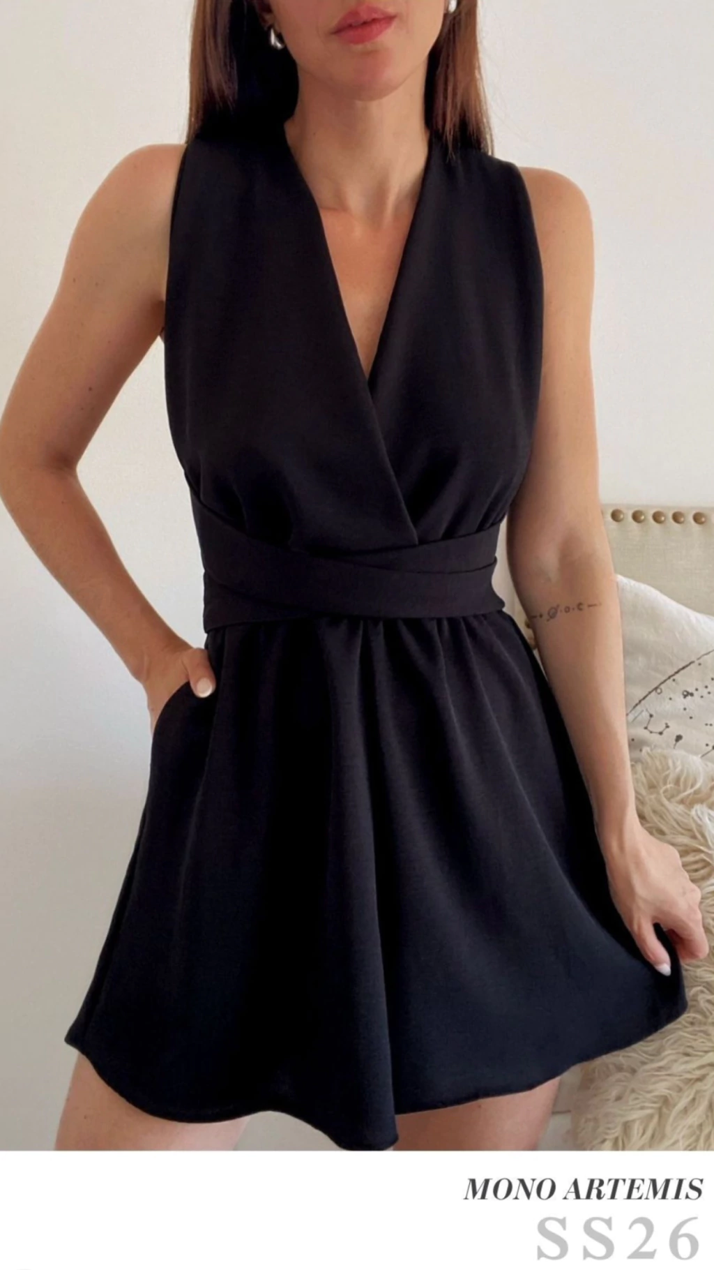 Mono de vestir con elastico en su cintura. Contiene un lazo para atar.